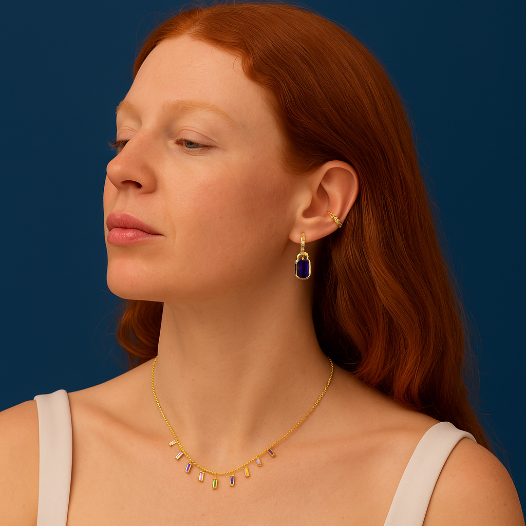 Aretes, collares y pulseras coloridas en oro 18k para mamá